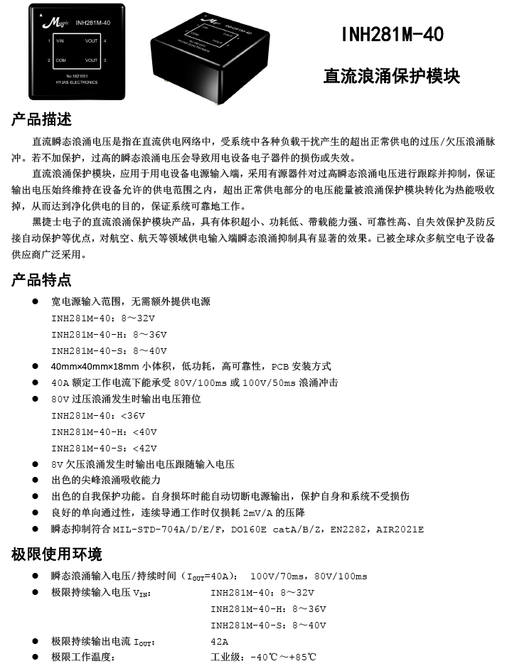 INH281M-40 直流28V/40A过压浪涌保护模块