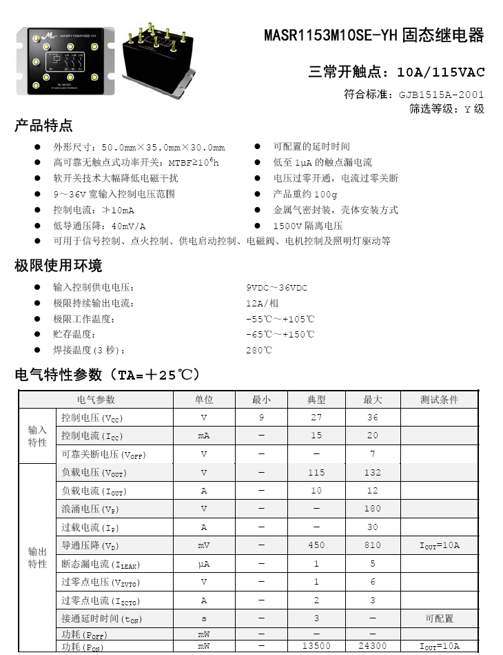 MASR1153M10SE-YH 三相交流115V/10A全国产固态继电器