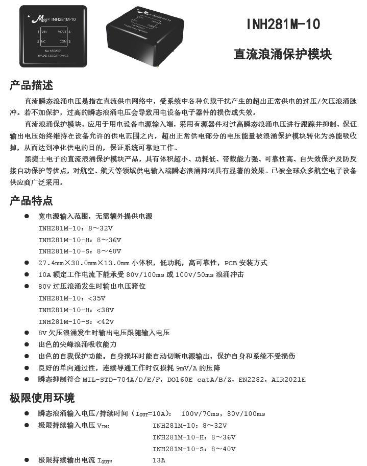 INH281M-10 直流28V/10A过压浪涌保护模块