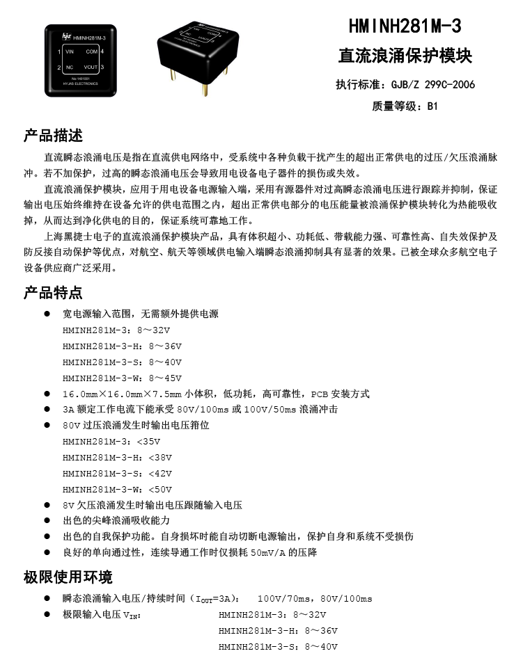 HMINH281M-3 直流28V/3A全国产过压浪涌保护模块(II代)